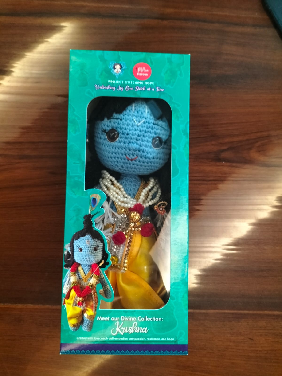 Our Radha and Krishna dolls aren’t just toys—they are storytellers. Each doll brings the timeless tales of Radha’s pure love and Krishna’s playful wisdom to life, offering children enchanting journeys and valuable lessons in love, courage, and kindness.